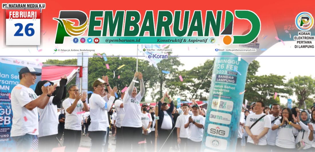 pada Minggu (26/02) di Lapangan Saburai, Kota Bandar Lampung. Jalan Sehat Bersama BUMN ini merupakan hasil kolaborasi antara SMBR dengan PT Jasa Marga (Persero) Tbk dan Perum Jasa Tirta II.