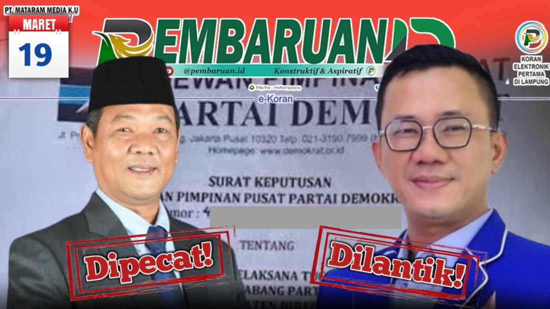 psiaceh.or.id/ – Dewan Pimpinan Pusat (DPP) Partai Demokrat memecat Wakil Ketua III DPRD Lampung yang juga kader DPD Demokrat Lampung Raden Muhammad Ismail, melaui SK DPP nomor : 24/SK/DPP.PD/IV/2023.