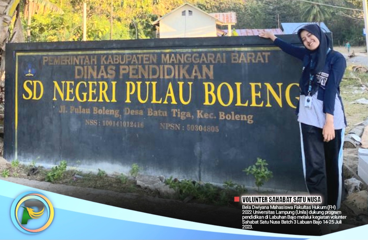 psiaceh.or.id/ – Bela Dwiyana Mahasiswa Fakultas Hukum (FH) 2022 Universitas Lampung (Unila) dukung program pendidikan di Labuhan Bajo melalui kegiatan volunter Sahabat Satu Nusa Batch 3 Labuan Bajo 14-25 Juli 2023.